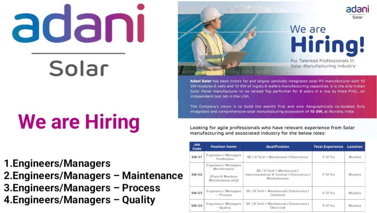 Adani Solar Walk In Interview | Mechanical, Electronics, Electrical Job