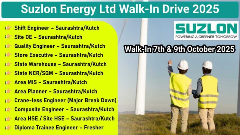 Suzlon Energy Ltd Walk-In Drive 2025 | Fresher & Experienced Openings | Jaipur & Udaipur …