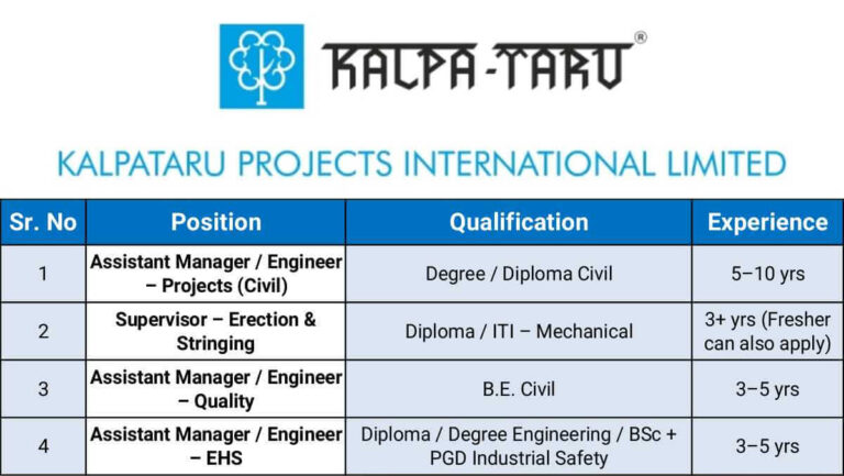 Kalpataru Projects International Ltd Hiring 2025 | Engineering Jobs in Karnataka, Andhra Pradesh & Telangana …