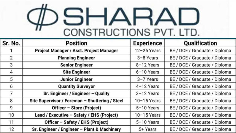Sharad Constructions Pvt Ltd Hiring 2025 | For High-Rise & Industrial Projects | Jobs in …