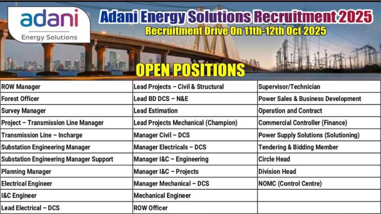 Adani Energy Solutions Recruitment 2025 | Transmission, DCS & Smart Metering Jobs | Recruitment Drive …
