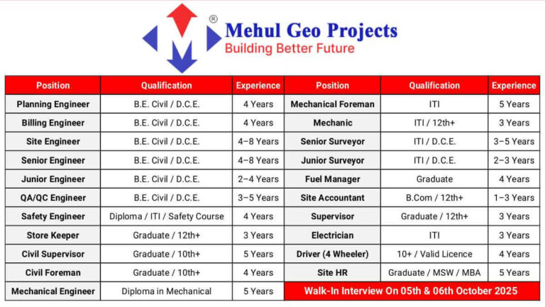 Mehul Geo Projects LLP Walk-In 2025 | Civil, Mechanical & Site Jobs in Gujarat Projects …