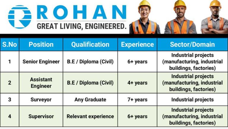 Join Rohan Builders & Developers Pvt Ltd | For Industrial Project Jobs in Maharashtra | …