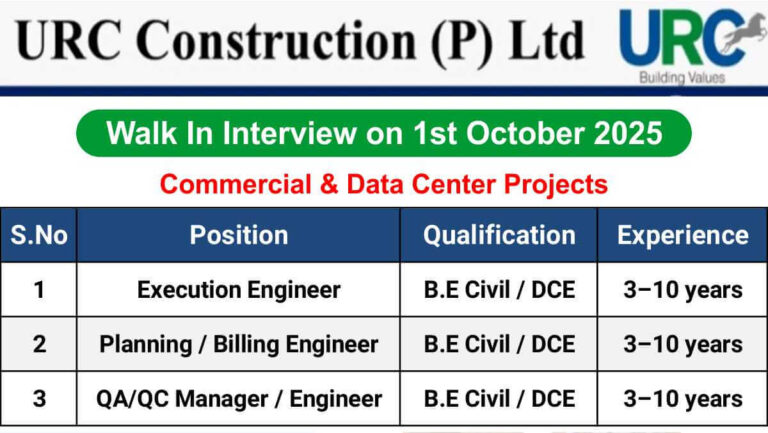 URC Construction Pvt Ltd Walk-in Interview | Walk-in for Civil Engineers | 1st October 2025 …