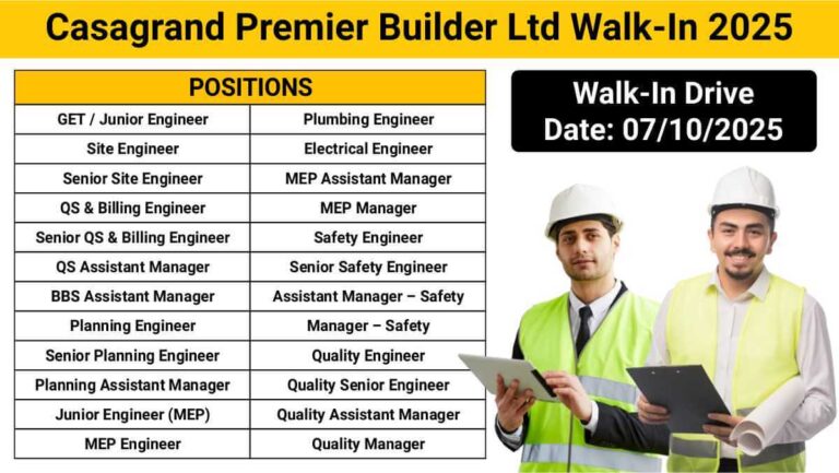 Casagrand Premier Builder Ltd Walk-In 2025 | For Residential Projects | Civil, MEP, Planning & …