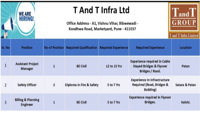 T and T Infra Limited Vacancy | Infrastructure development (Roads, Bridges & Buildings Company Name …