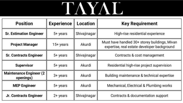 Tayal Recruitment 2025 | For High-Rise Residential Project Jobs | Exciting Civil Engineering Jobs in …