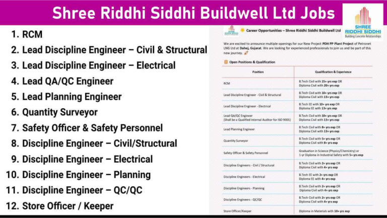 Shree Riddhi Siddhi Buildwell Ltd Jobs | Civil, Electrical & QA/QC Engineers | Dahej Company …