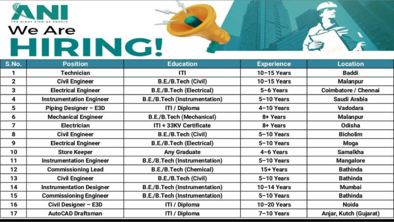 ANI Integrated Services Ltd Hiring 2025 | Multiple Engineering Jobs Across India & Abroad Company …