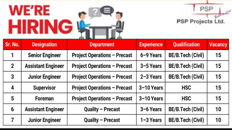 PSP Projects Ltd Hiring 2025 | Civil Engineers & Supervisors for Precast Projects in Gujarat …