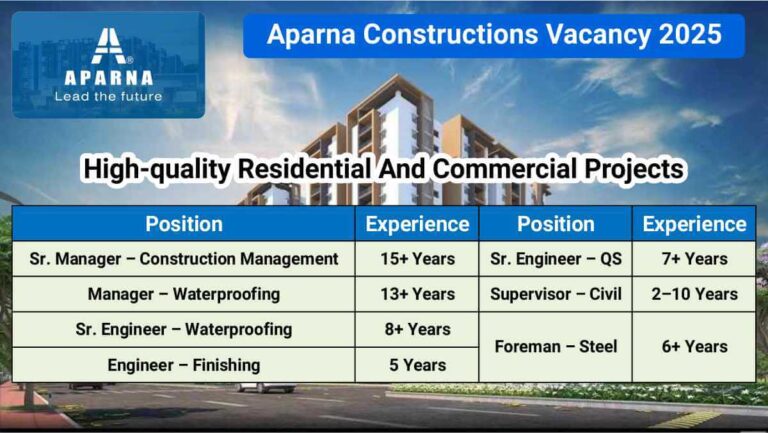 Aparna Constructions Vacancy 2025 | Civil Engineers & Managers | Hyderabad Jobs