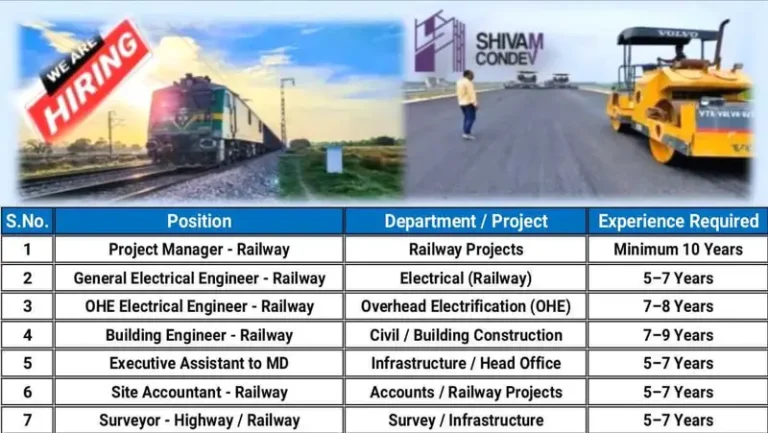 Shivam Condev Pvt Ltd Vacancy | Railway and Infrastructure Projects | Construction Jobs Company Name …