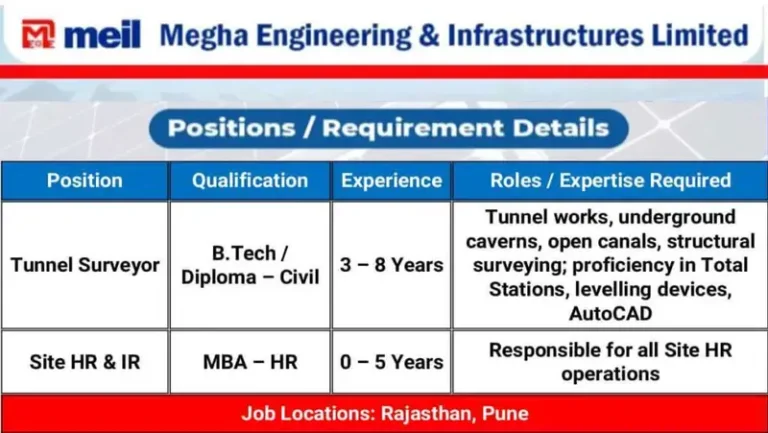 Megha Engineering and Infrastructures Ltd | Walk In Interview October 2025 Company Name Megha Engineering …
