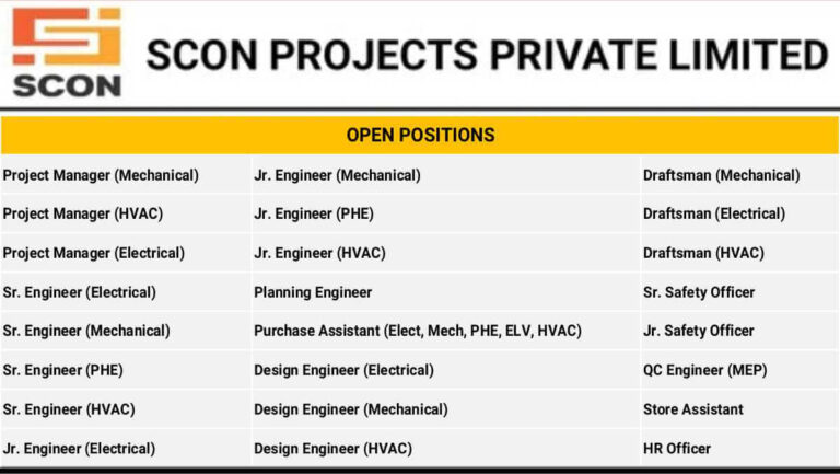 Scon Projects Pvt Ltd Mega Job Vacancy 2025 | Mechanical, Electrical & HVAC Engineers Apply …