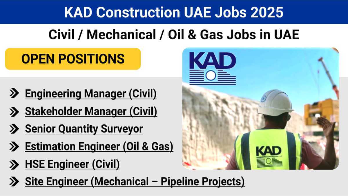 KAD Construction UAE Jobs 2025 | Civil / Mechanical / Oil & Gas Jobs in UAE