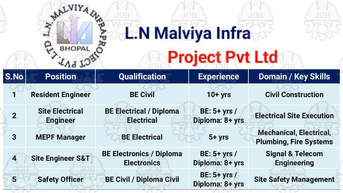 L. N. Malviya Infra Projects Pvt Ltd Hiring 2025 | Resident Engineer, Electrical & S&T Engineer Jobs