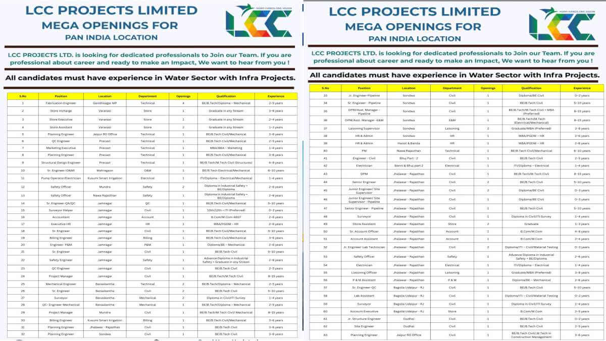LCC Projects Ltd Mega Hiring 2025 | 60+ Openings Across India | Apply Now