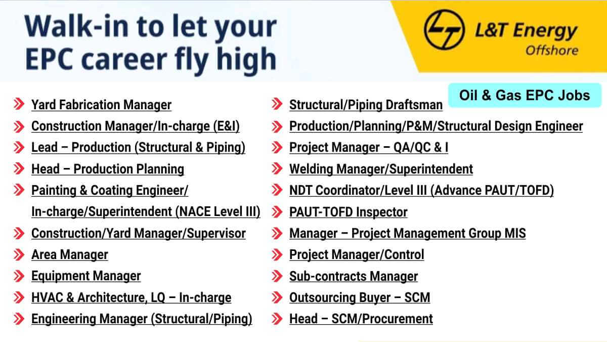 L&T Energy Offshore Walk-In Interview 2025 | Oil & Gas EPC Jobs | Apply Now