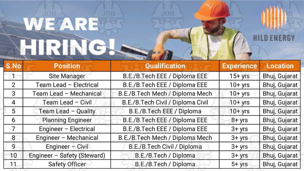 Mega Job Openings at Hild Energy | Planning, Quality & Team Lead Roles in Bhuj, Gujarat