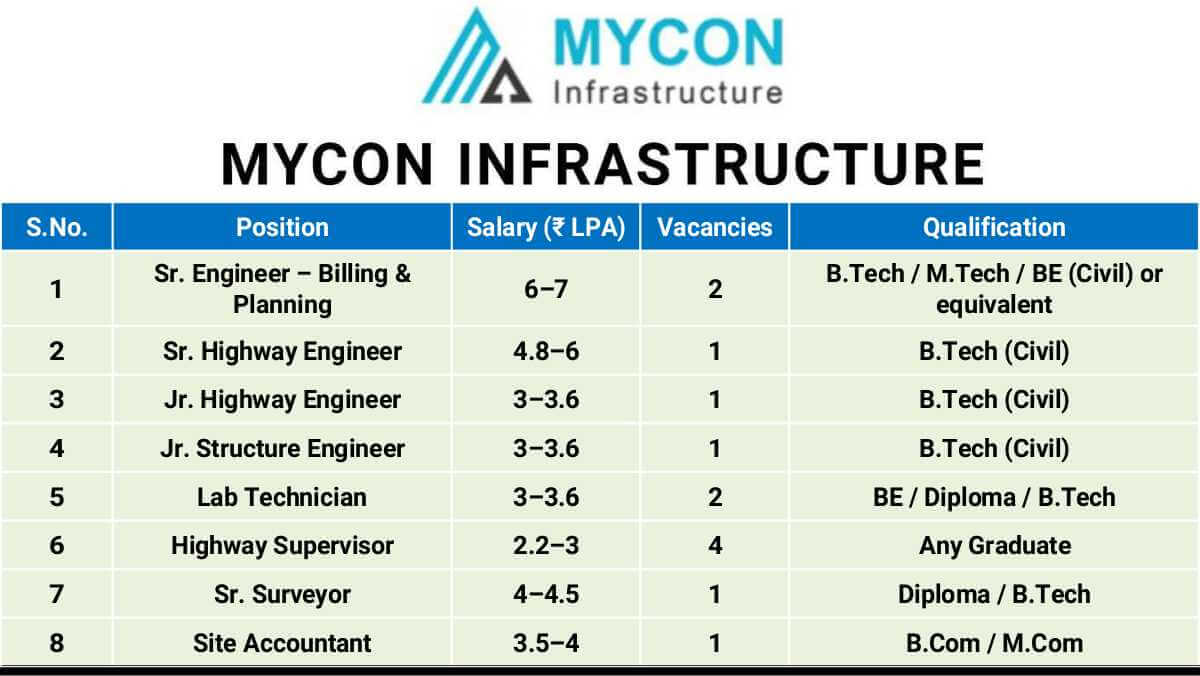 MYCON Infrastructure Job Vacancy | Road & Highway Project Jobs | Jalgaon & Parola Locations