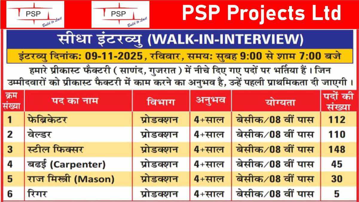 PSP Projects Ltd Mega Walk-In Interview 2025 | 450+ Openings | Precast Factory Jobs
