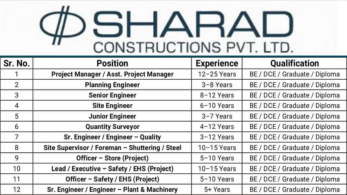 Sharad Constructions Pvt Ltd Hiring 2025